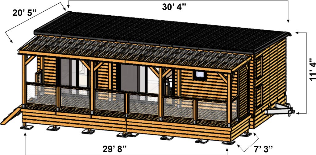 Hekipia America delivers the Columbia park model RV directly to your site, fully built and ready for hook-up. However, porch installation is the responsibility of the campground or resort. Your team will need to assemble and install the chosen porch structure after delivery, using the provided materials and instructions.